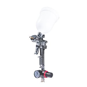 Готовое решение для тех, кому не нужен компрессор, но хочется обладать удобным покрасочным устройством. В конструкции уже предусмотрен компактный источник воздуха, способный обеспечить достаточное давление для работы.